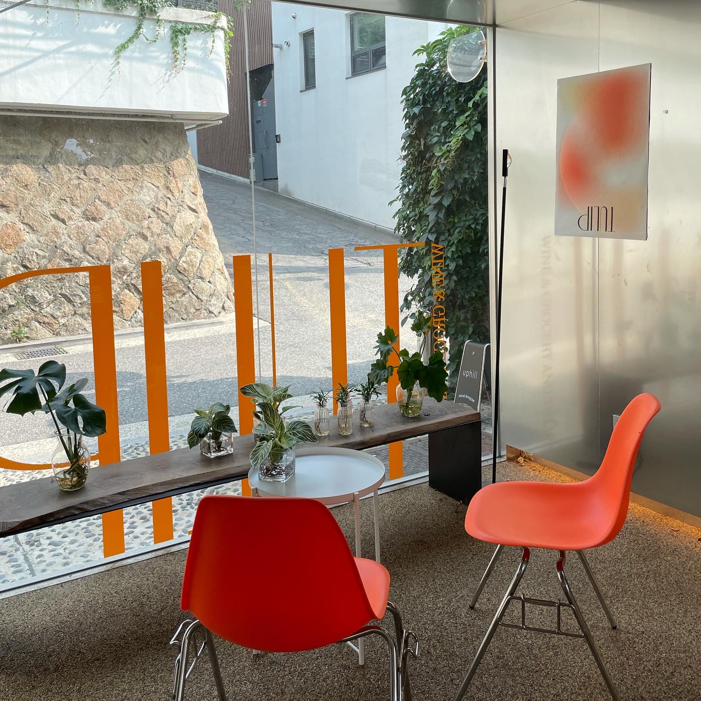튤립 와인바에 메인 컬러인 오렌지 컬러의