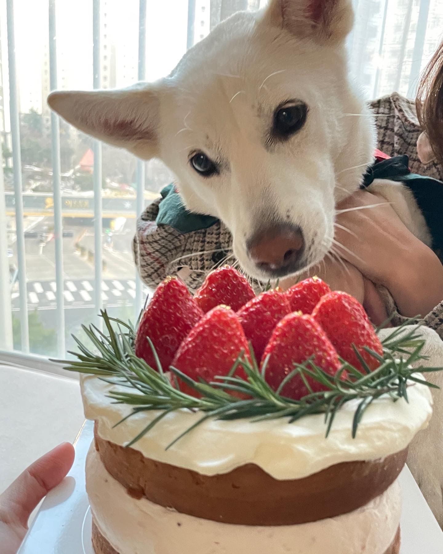 딸기 요거트 케이크를 픽업하고